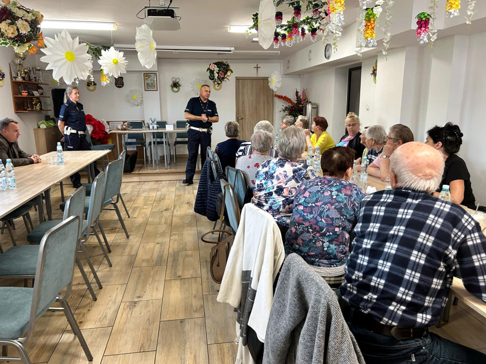 Głównymi tematami były metody działania oszustów wyłudzających pieniądze metodą „na policjanta” oraz „na wnuczka”. Funkcjonariusze ostrzegali seniorów, aby nie wpuszczali do domów osób nieznajomych, a także omówili zagrożenia związane z zakupami na tzw. Pokazach handlowych. Policjanci przypomnieli również o konieczności ochrony danych osobowych oraz poruszyli kwestie związane z bezpieczeństwem seniorów na drodze.