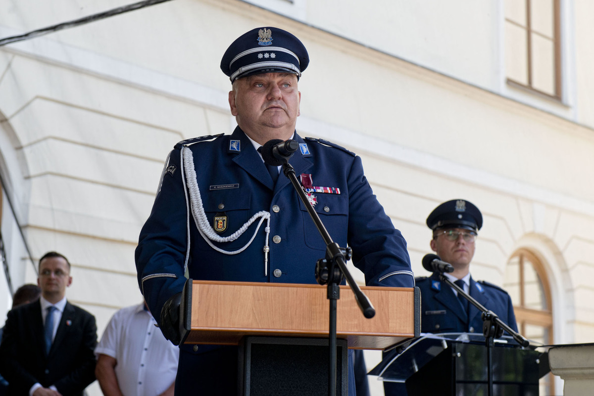 Komendant Powiatowy Policji w Mińsku Mazowieckim insp. Krzysztof Naszkiewicz, powitał zaproszonych gości i wygłosił przemówienie skierowane do funkcjonariuszy i pracowników. Podziękował im za codzienną, trudną służbę, zaangażowanie i gotowość do działania w każdej sytuacji. Szczególnie słowa wdzięczności skierował do rodzin policjantów, które – jak podkreślił – stanowią oparcie, siłę i motywację w codziennej pracy mundurowych.