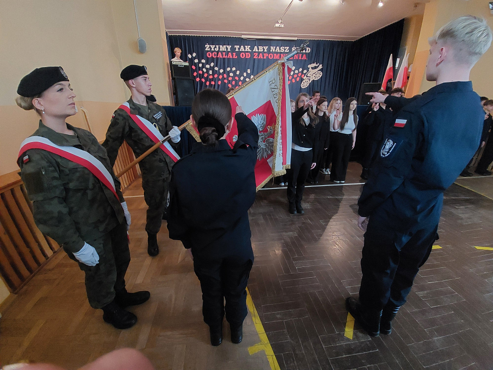 Komendant zwrócił się także do uczniów klas humanistycznych, składając im serdeczne życzenia i podkreślając, że wybrali równie wartościowy kierunek kształcenia, podążając śladem patrona szkoły – Adama Mickiewicza.
