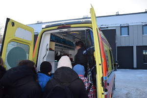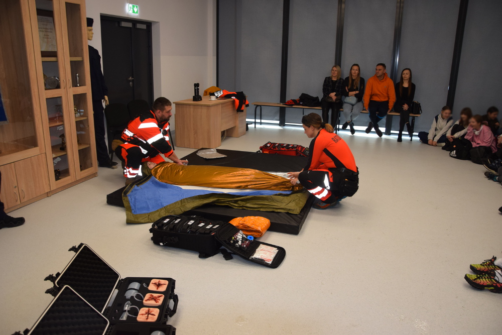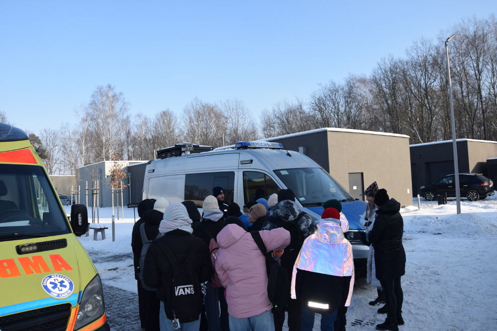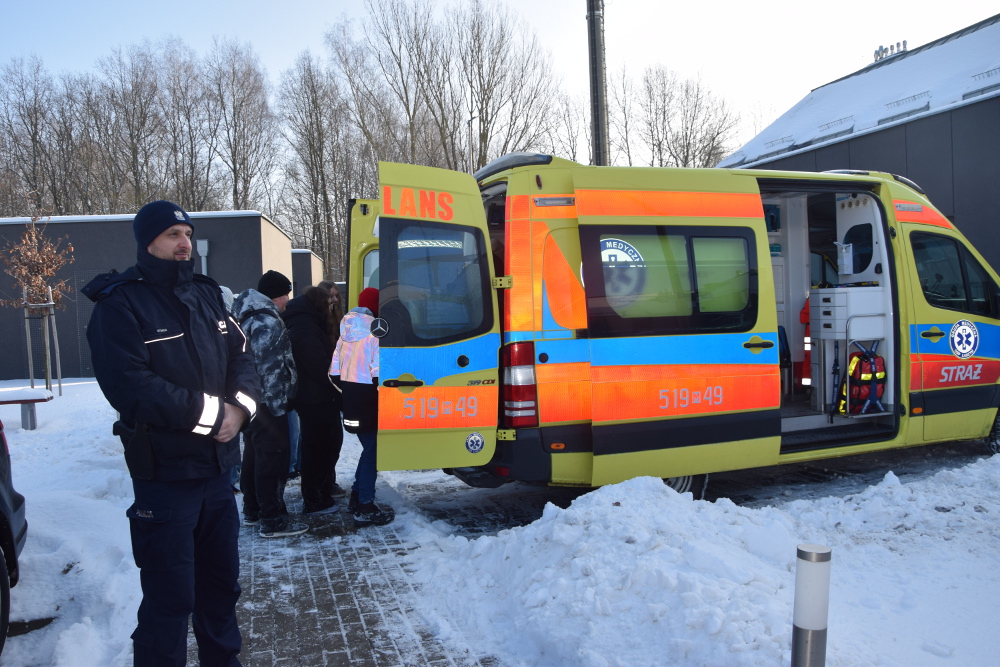 Dużym zainteresowaniem cieszyły się także prezentacje karetki pogotowia ratunkowego oraz wozu strażackiego. Uczniowie mogli z bliska zobaczyć specjalistyczny sprzęt wykorzystywany podczas akcji ratunkowych, poznać zasady jego działania oraz dowiedzieć się, na czym polega codzienna praca ratowników medycznych i strażaków.