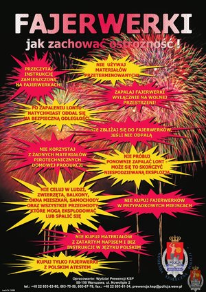 - Kupujmy fajerwerki u sprawdzonych, rzetelnych sprzedawców i stosujmy się do instrukcji zamieszczonych na opakowaniach fajerwerków;