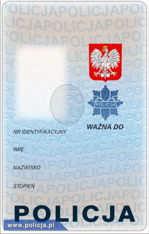 - policjant pełni służbę w komisariacie specjalistycznym to na legitymacji będzie umieszczona nazwa komendy wojewódzkiej (Stołecznej) policji, na terenie której znajduje się komisariat specjalistyczny;