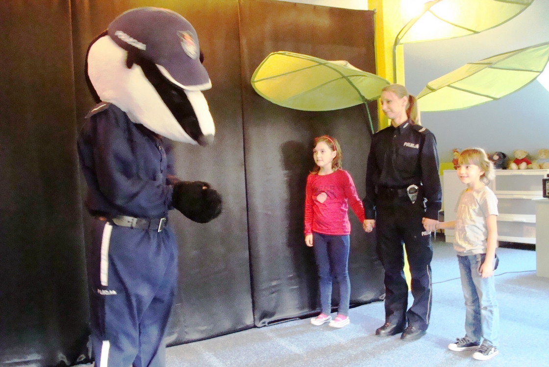 Policyjny borsuk – maskotka Komendy Stołecznej Policji, wziął udział w spotkaniu profilaktycznym zorganizowanym w Bibliotece Publicznej w Kałuszynie. Policyjna prelekcja przygotowana przez policjantkę z zespołu do spraw nieletnich i patologii, dotyczyła przede wszystkim bezpieczeństwa dzieci i młodzieży podczas zimowego wypoczynku. Policjantka z sierżantem Borsukiem przypomnieli dzieciom o numerach alarmowych, a także pokazali jak należy zachować się w kontakcie z niebezpiecznym zwierzęciem.
