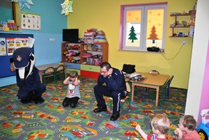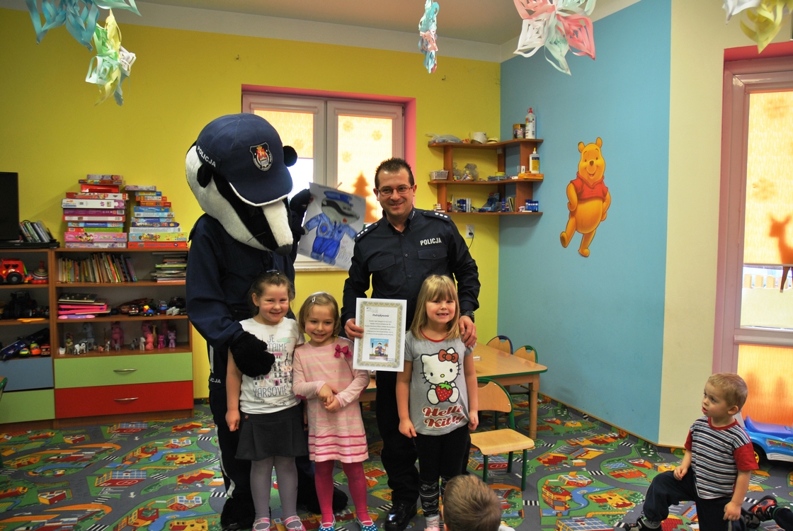 Na zakończenie dzieci podziękowały policjantom za niezwykle kształcącą pogadankę, wręczając im pamiątkowy dyplom i rysunek przedstawiający sierżanta Borsuka.