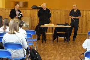 Spotkanie było kontynuacją cyklu wykładów o bezpieczeństwie na stadionach piłkarskich, które policjanci zainaugurowali kilka dni wcześniej w Zespole Szkół w Jeruzalu.