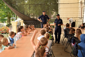 W środę 7 sierpnia, kolejna grupa dzieci miała okazję wziąć udział w profilaktycznym spotkaniu z policjantami mińskiej komendy. Tym razem mundurowi spotkali się z uczestnikami "Wakacji w pałacu" organizowanych przez Miejski Dom Kultury w Mińsku Mazowieckim. Sierżant sztabowy Dominika Witek i sierżant sztabowy Karol Witowski z zaangażowaniem i w ciekawy sposób przypomnieli podstawowe zasady związane z wakacyjnym bezpieczeństwem.