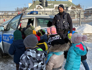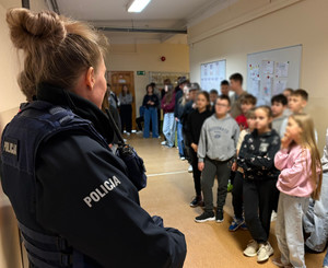 Bezpieczne ferie – spotkanie dzielnicowej z uczniami szkoły w Ładzyniu